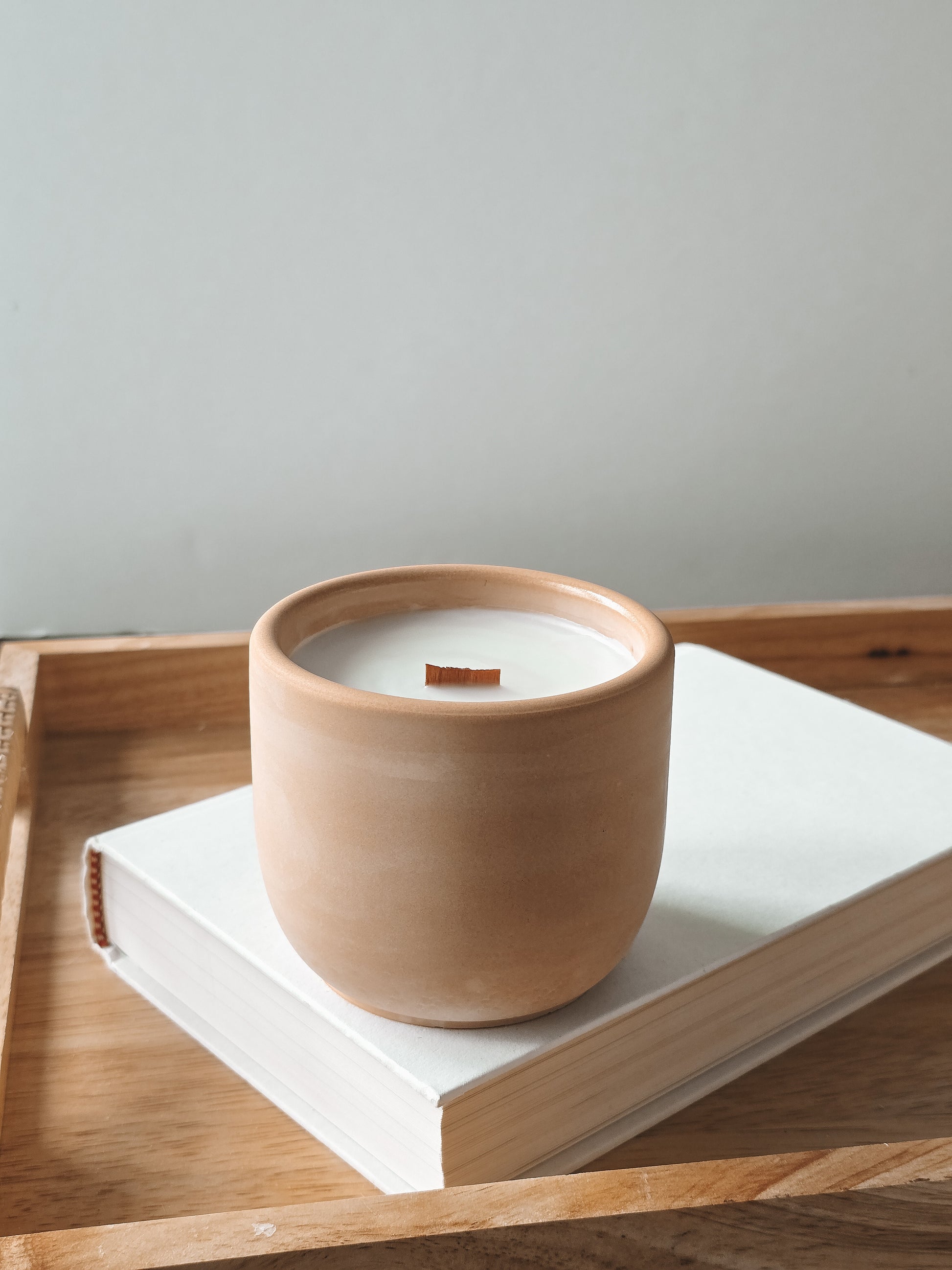 All candles come in a one of a kind, handmade cement vessel made by Chelsea.